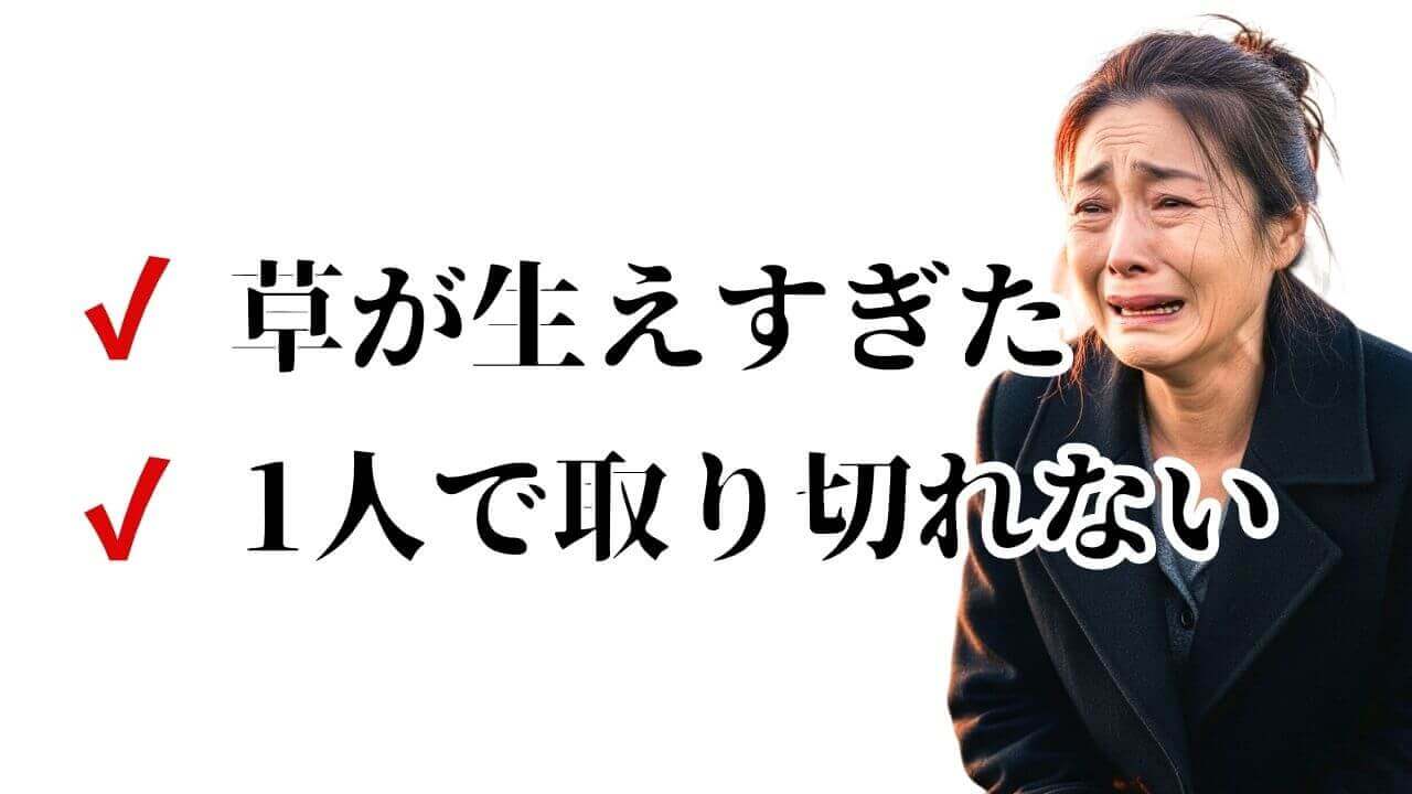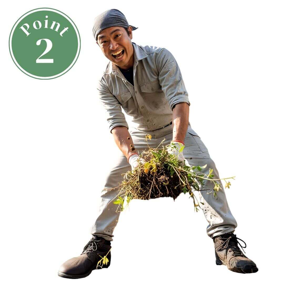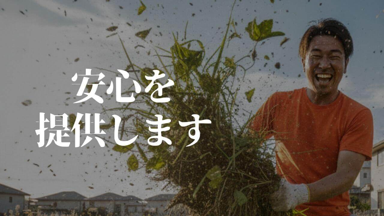 作業が多すぎて草取りを断念してしまった方や、長年放置して手作業では対応しきれなくなった方も、ぜひお任せください。長時間の草むしりは、身体への負担も大きくおすすめできません。